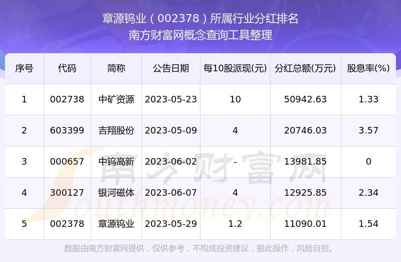 二、章源鎢業(yè)002378行業(yè)分紅排名