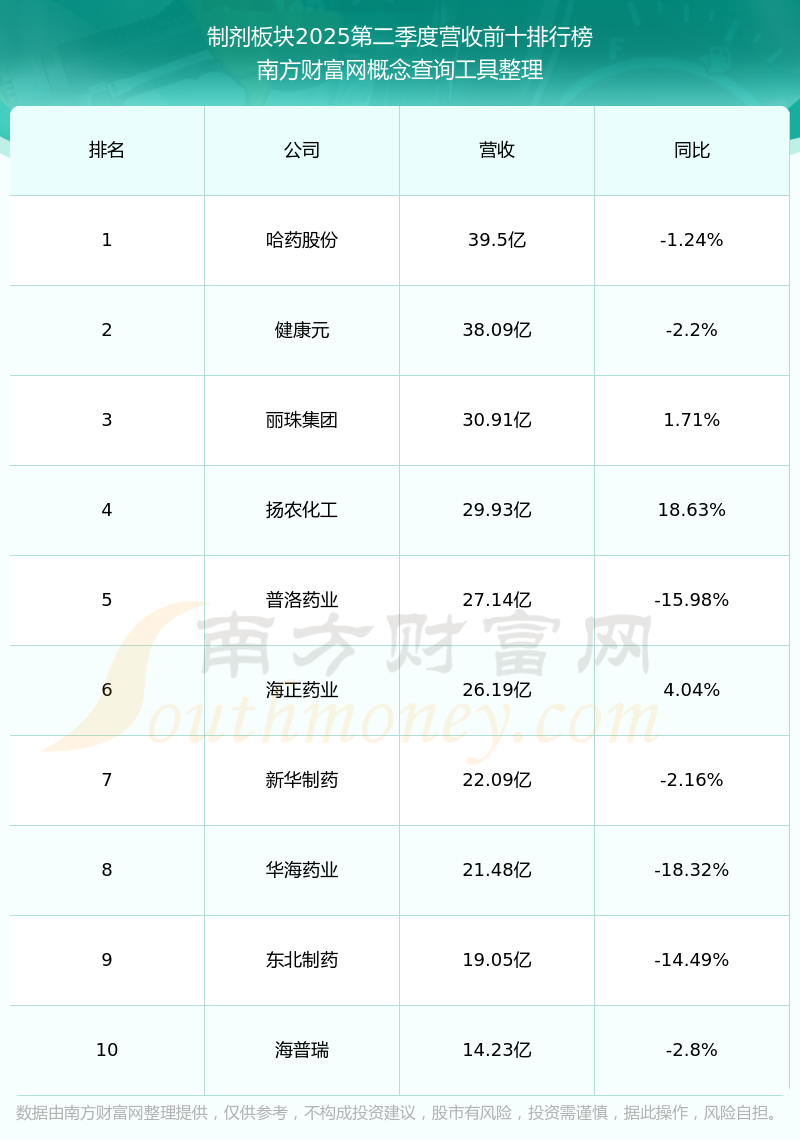 按照南方財富網(wǎng)概念查詢工具統(tǒng)計,該股所屬板塊為制劑板塊,該板塊共有41只股票,圣諾生物2025第二季度營收在該板塊中排名為第37名,該板塊2025第二季度營收排名前十的股票如下表: