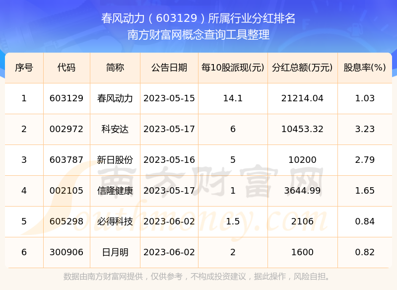 二、春風(fēng)動力603129行業(yè)分紅排名