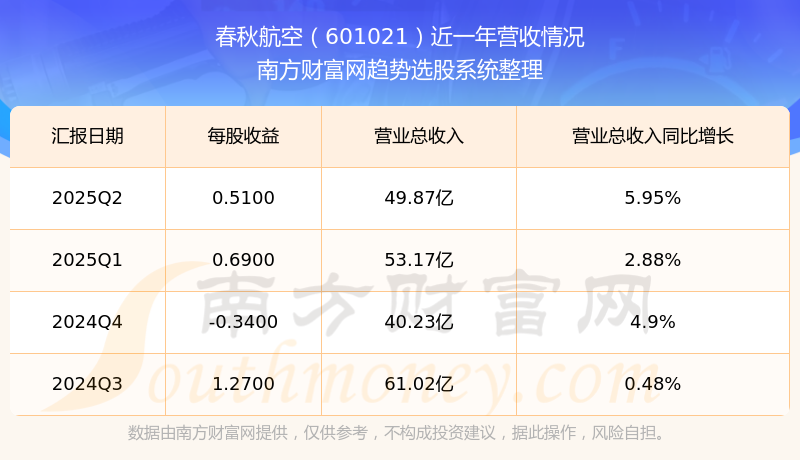在2025年第二季度,春秋航空的業(yè)績表現(xiàn),主營業(yè)務(wù)收入達到49.87億元,實現(xiàn)了5.95%的同比增長率。同時,公司歸母凈利潤錄得4.91億元,同比增長-10.74%。