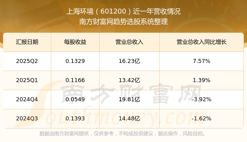 上海環(huán)境(601200)披露2025年第二季度報告,報告期實現(xiàn)營收16.23億元,同比7.57%;歸母凈利潤1.79億元,同比-2.68%;扣非凈利潤1.74億元,同比-4.58%。