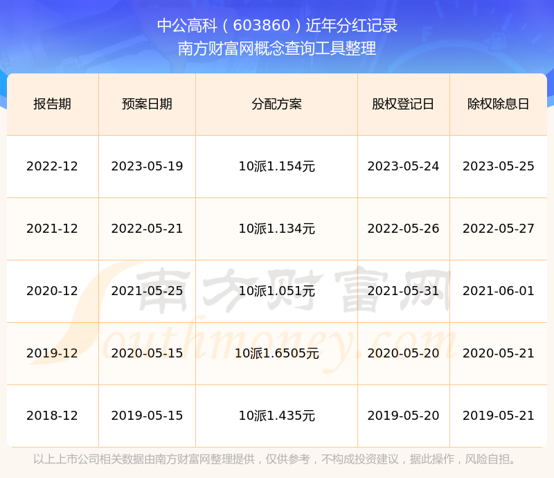 中公高科最新一次公布的分紅方案:10派1.154元。