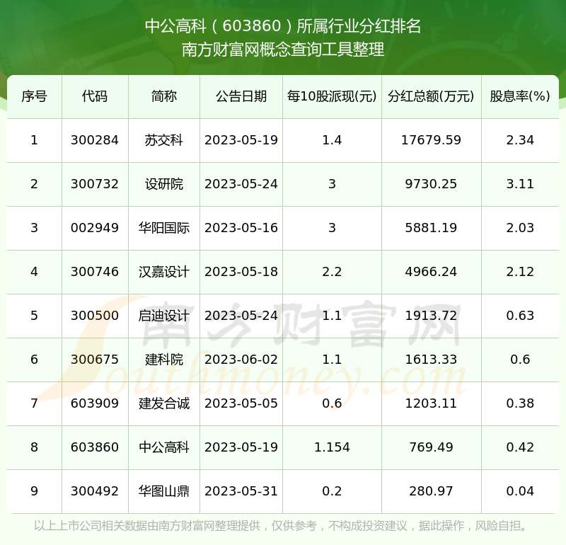 按照南方財(cái)富網(wǎng)趨勢(shì)選股系統(tǒng)統(tǒng)計(jì),中公高科所屬行業(yè)為工程咨詢服務(wù)行業(yè),工程咨詢服務(wù)行業(yè)分紅排名情況如下表: