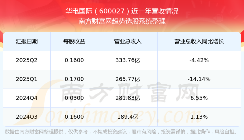 一、華電國際(600027)股票營收情況
