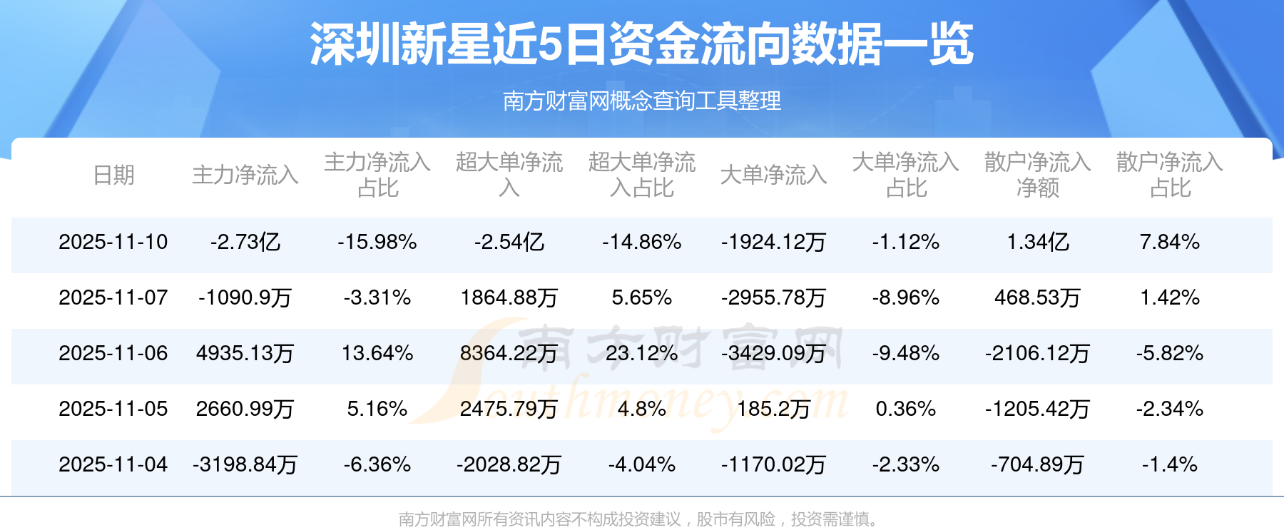 11月10日消息,深圳新星11月10日主力凈流出2.73億元,超大單凈流出2.54億元,大單凈流出1924.12萬元,散戶凈流入1.34億元。