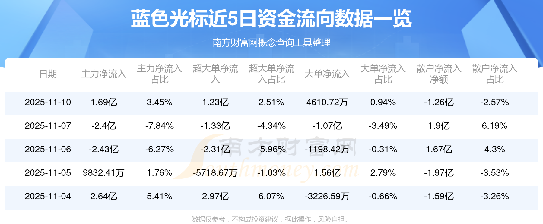 11月10日消息,藍(lán)色光標(biāo)主力凈流入1.69億元,超大單凈流入1.23億元,散戶凈流出1.26億元。
