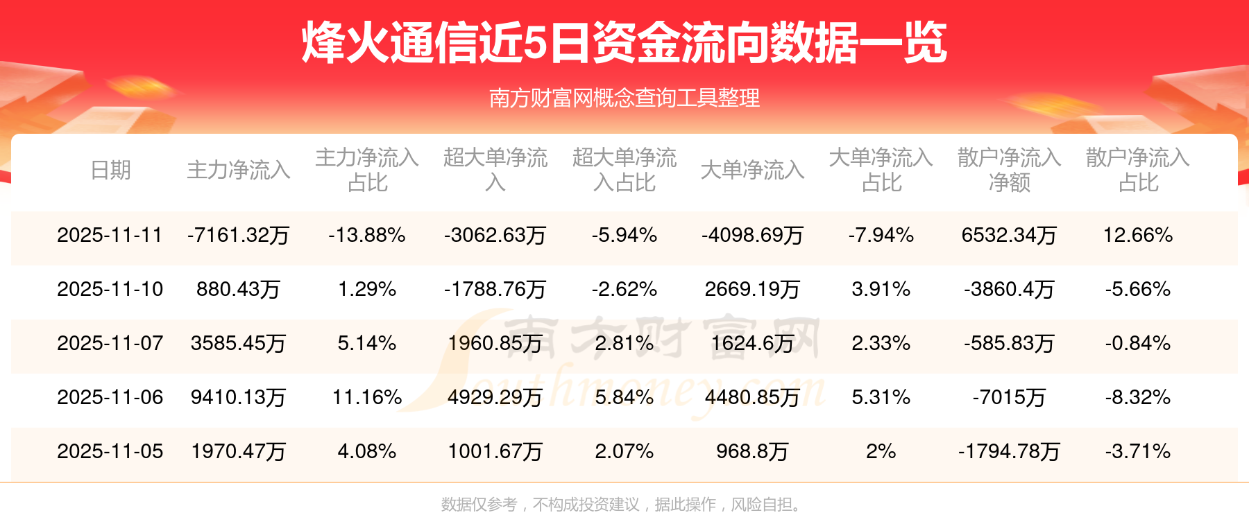 11月11日消息,烽火通信資金凈流出7161.32萬(wàn)元,超大單資金凈流出3062.63萬(wàn)元,換手率1.49%,成交金額4.24億元。