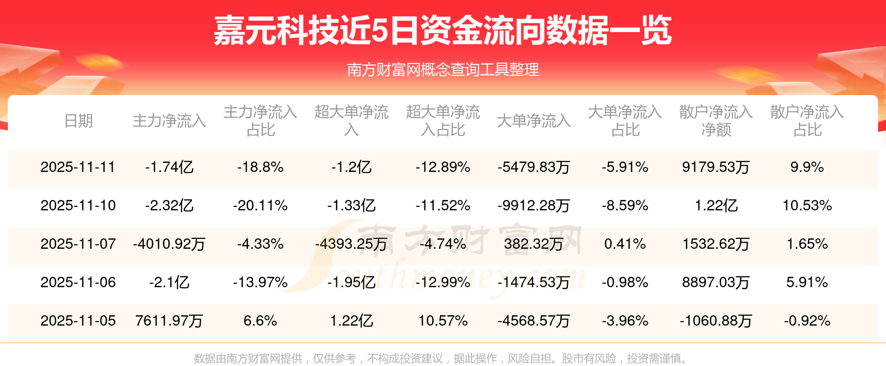 11月11日消息,嘉元科技11月11日主力凈流出1.74億元,超大單凈流出1.2億元,大單凈流出5479.83萬元,散戶凈流入9179.53萬元。