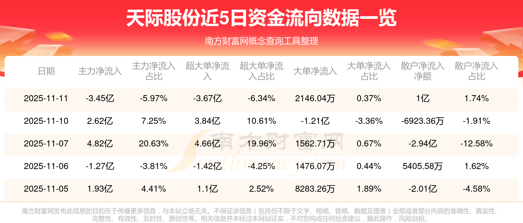 近5日資金流向一覽見下表: