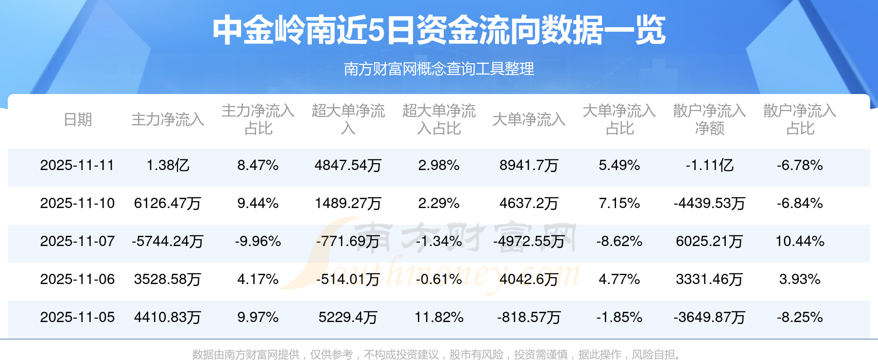 11月11日收盤消息,中金嶺南3日內(nèi)股價上漲0.55%,最新報5.650元,成交額14.43億元。