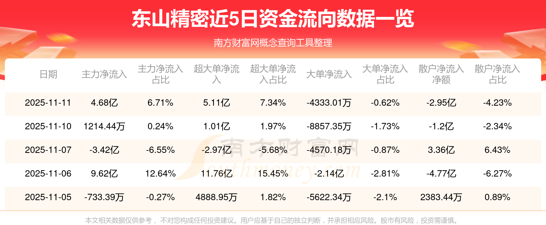 近5日資金流向一覽見下表:
