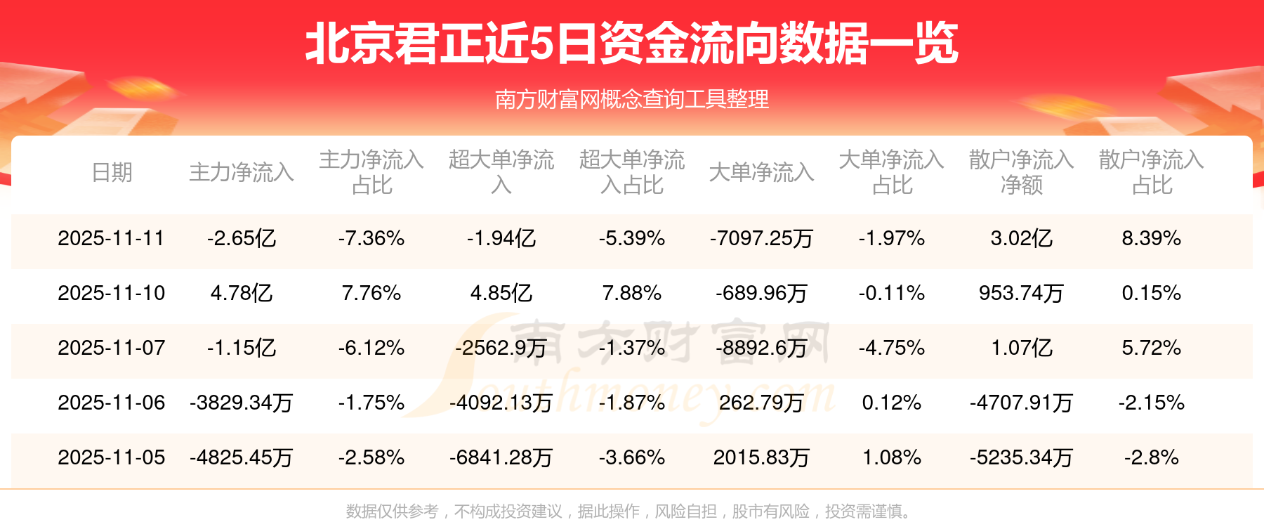 11月11日消息,北京君正主力資金凈流出2.65億元,超大單資金凈流出1.94億元,散戶資金凈流入3.02億元。