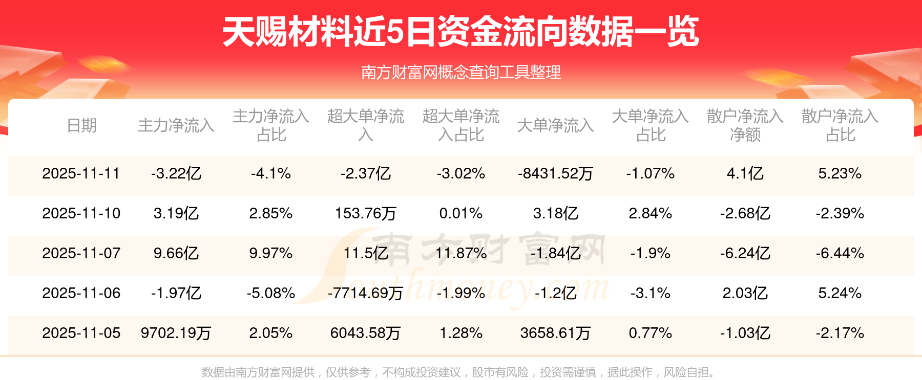 11月5日消息,天賜材料3日內股價上漲11.11%,最新報43.700元,漲1.9%,成交額68.59億元。