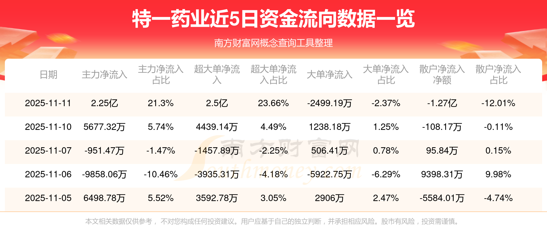 11月11日消息,特一藥業(yè)11月11日主力凈流入2.25億元,超大單凈流入2.5億元,大單凈流出2499.19萬元,散戶凈流出1.27億元。