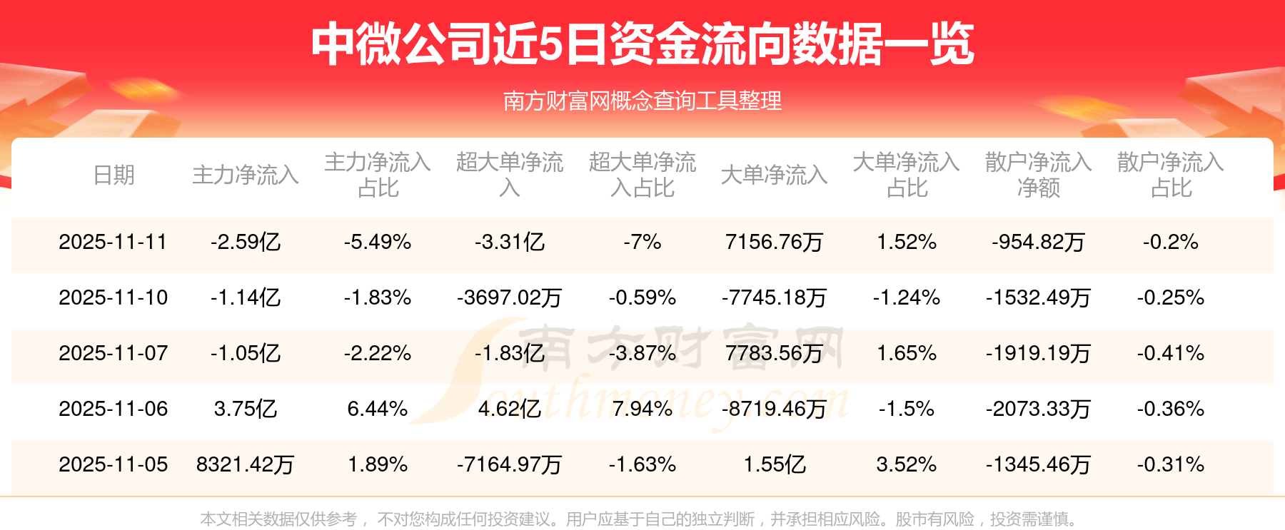 近5日資金流向一覽見下表: