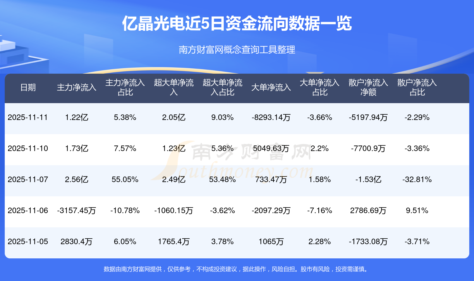 11月10日消息,億晶光電資金凈流出1.22億元,超大單資金凈流入2.05億元,最新報(bào)5.120元,換手率38.16%,成交總金額22.51億元。