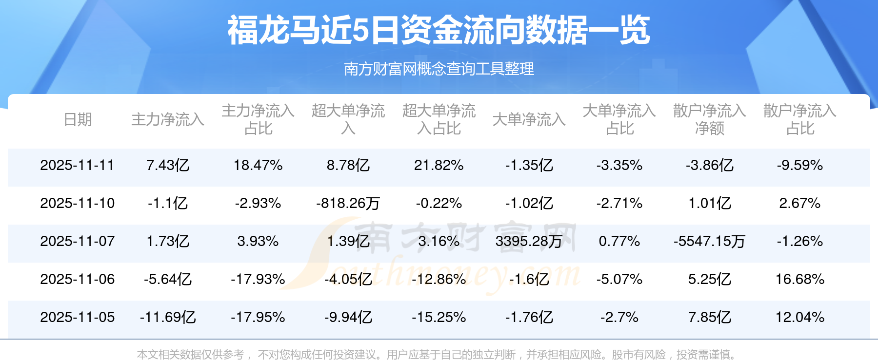 近5日資金流向一覽見下表:
