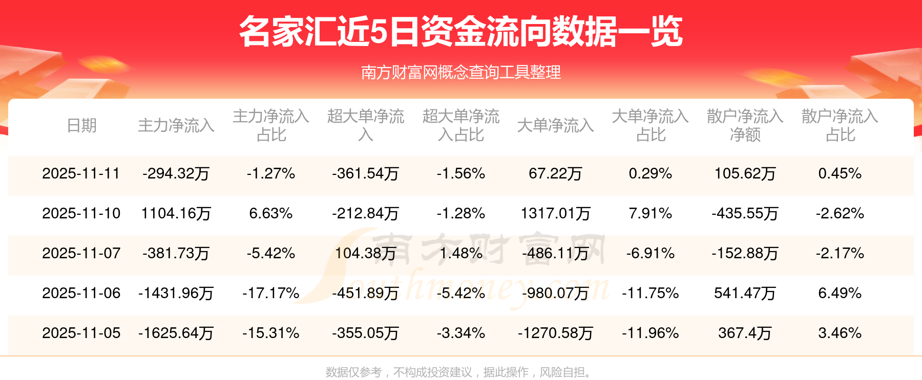 近5日資金流向一覽見下表: