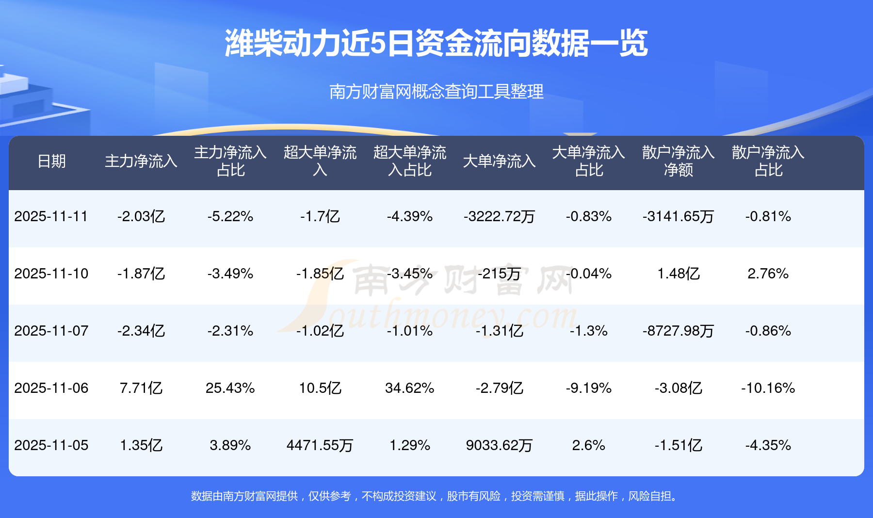 11月11日消息,濰柴動力11月11日主力資金凈流出2.03億元,超大單資金凈流出1.7億元,大單資金凈流出3222.72萬元,散戶資金凈流出3141.65萬元。