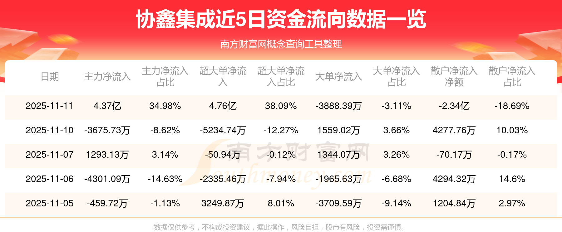 11月11日消息,協(xié)鑫集成11月11日主力凈流入4.37億元,超大單凈流入4.76億元,大單凈流出3888.39萬(wàn)元,散戶(hù)凈流出2.34億元。