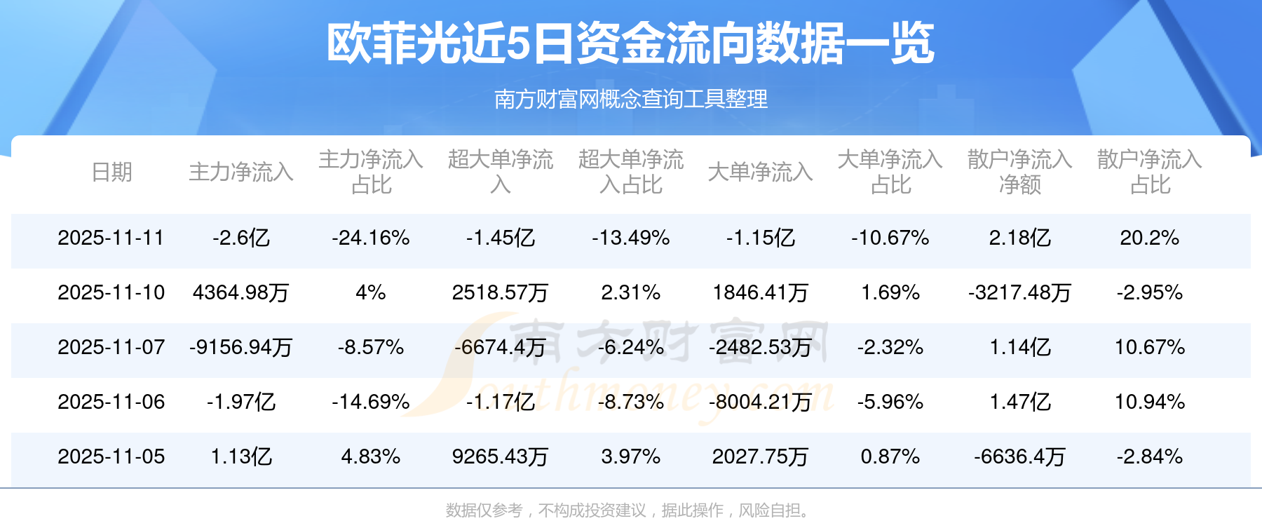 11月11日消息,歐菲光主力資金凈流出2.6億元,超大單資金凈流出1.45億元,散戶資金凈流入2.18億元。