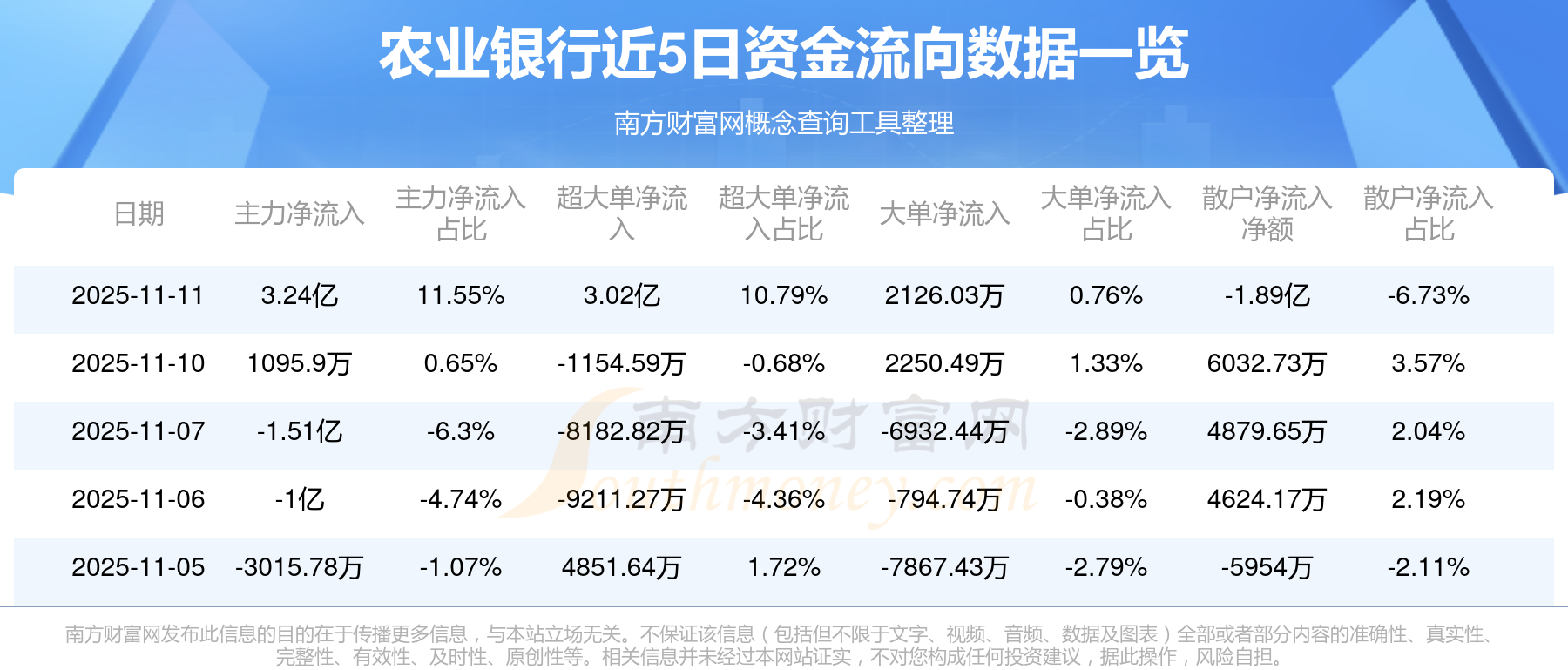 資金流向數(shù)據(jù)方面,11月11日主力資金凈流流入3.24億元,超大單資金凈流入3.02億元,大單資金凈流入2126.03萬(wàn)元,散戶資金凈流出1.89億元。