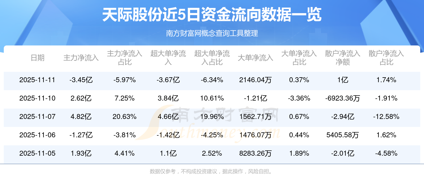 11月11日消息,天際股份資金凈流出3.45億元,超大單資金凈流出3.67億元,換手率23.84%,成交金額49.67億元。