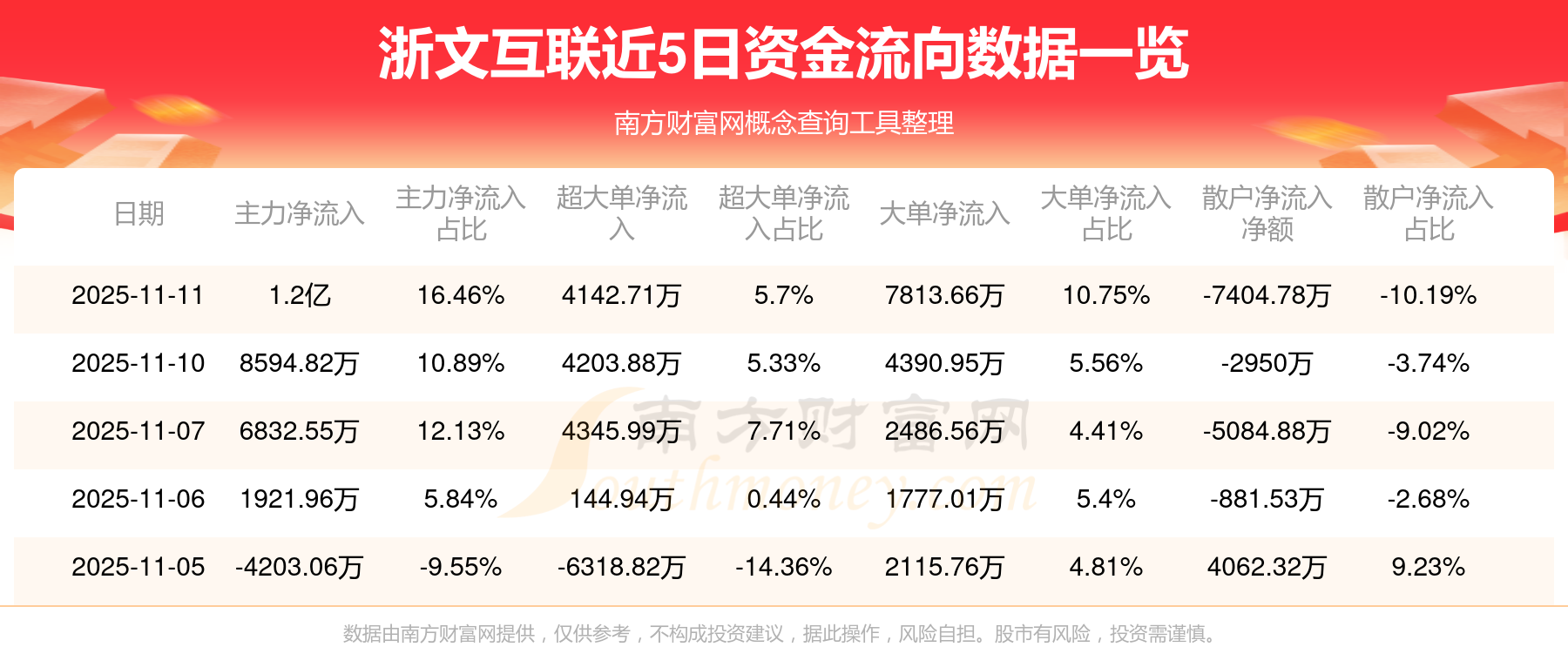 近5日資金流向一覽見下表: