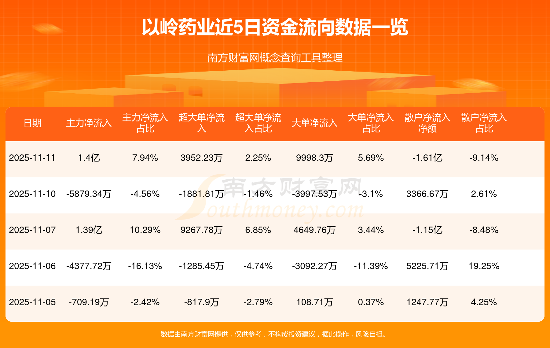 近5日資金流向一覽見下表:
