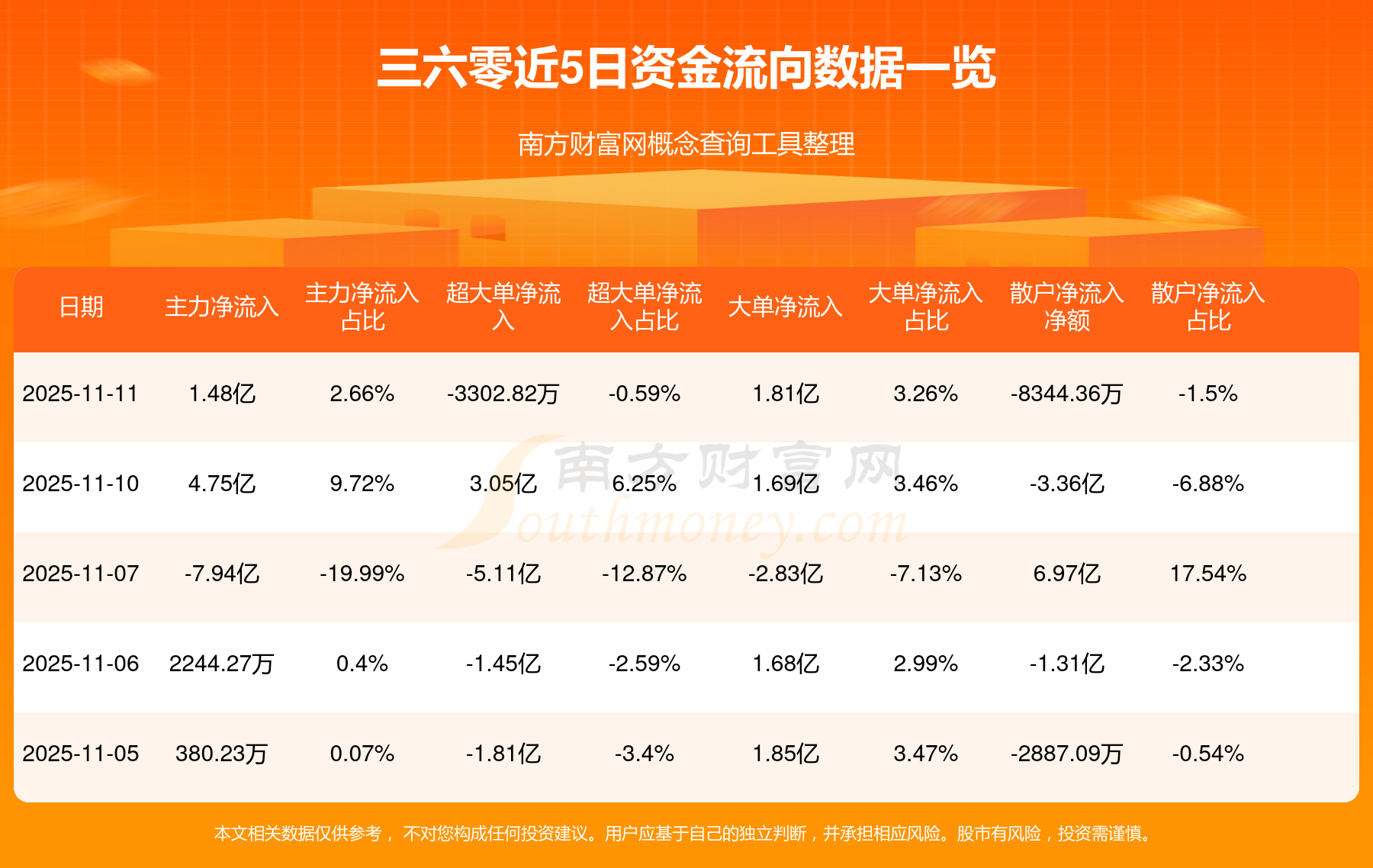 11月11日消息,三六零11月11日主力資金凈流入1.48億元,超大單資金凈流出3302.82萬元,大單資金凈流入1.81億元,散戶資金凈流出8344.36萬元。