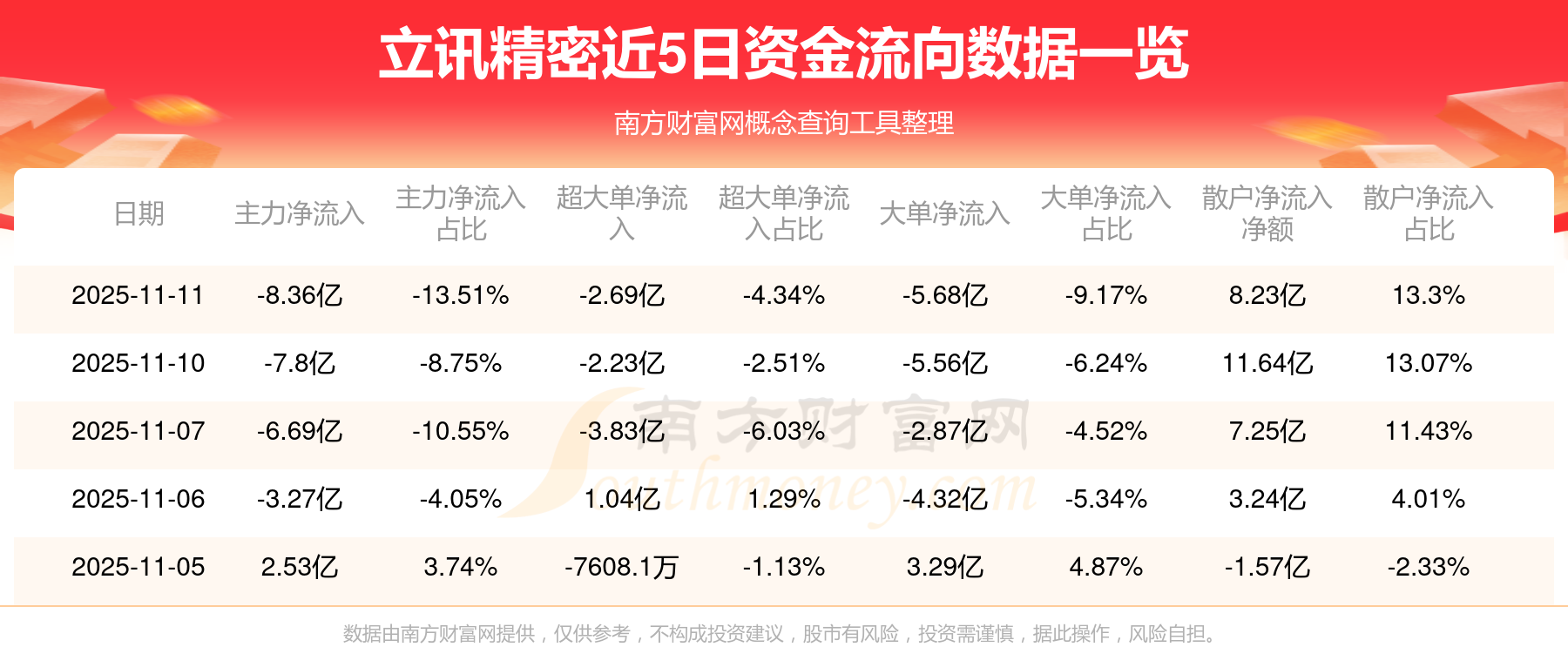 資金流向數(shù)據(jù)方面,11月11日主力資金凈流流出8.36億元,超大單資金凈流出2.69億元,大單資金凈流出5.68億元,散戶資金凈流入8.23億元。