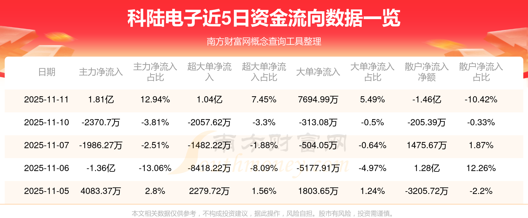 截止11月11日10時18分科陸電子(002121)漲4.29%,報9.800元/股,3日內(nèi)股價下跌1.07%,換手率8.79%,成交額12.07億元。