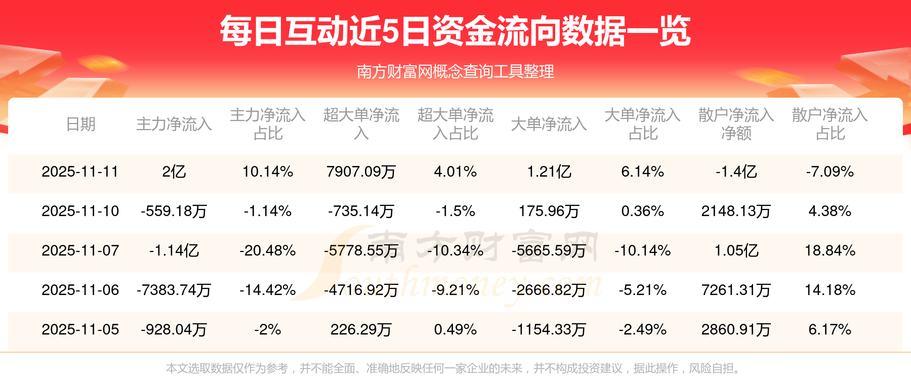 近5日資金流向一覽見下表: