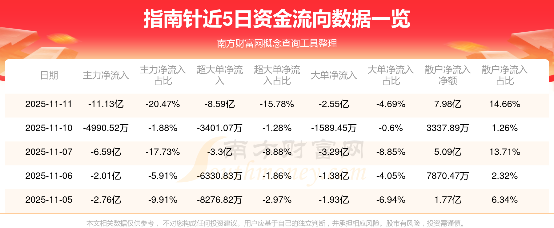 資金流向數(shù)據(jù)方面,11月11日主力資金凈流流出11.13億元,超大單資金凈流出8.59億元,大單資金凈流出2.55億元,散戶資金凈流入7.98億元。