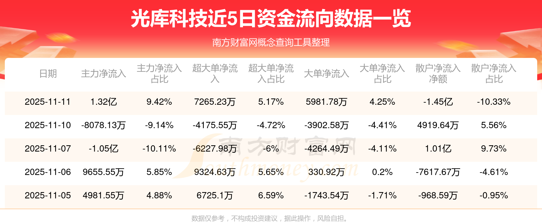 11月11日該股主力資金凈流入1.32億元,超大單資金凈流入7265.23萬元,大單資金凈流入5981.78萬元,中單資金凈流入1281.89萬元,散戶資金凈流出1.45億元。