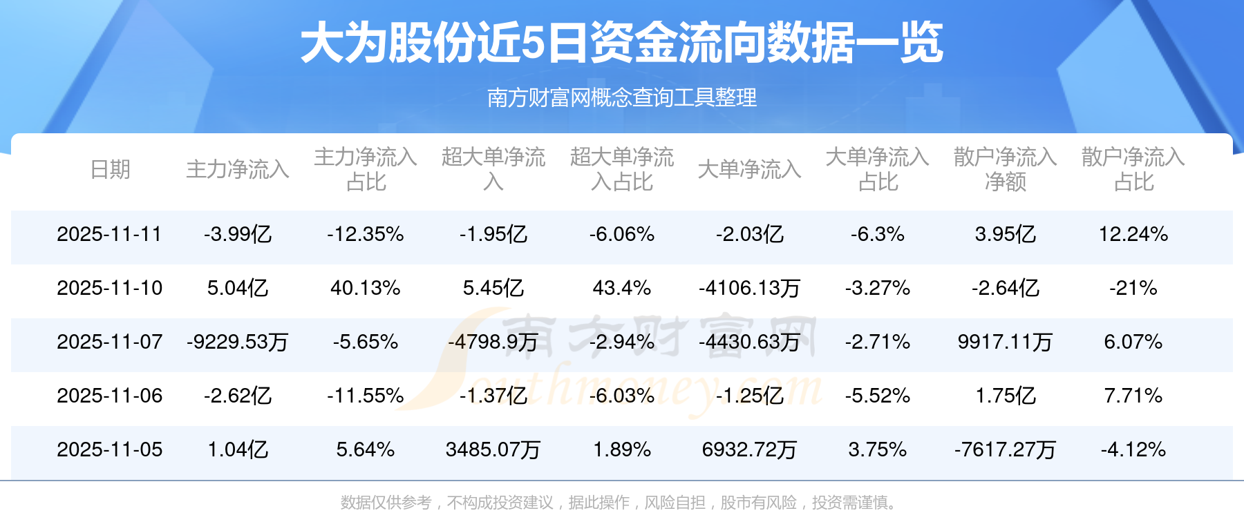 資金流向數(shù)據(jù)方面,11月11日主力資金凈流流出3.99億元,超大單資金凈流出1.95億元,大單資金凈流出2.03億元,散戶資金凈流入3.95億元。