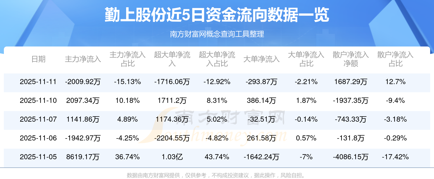 11月11日該股主力凈流出2009.92萬元,超大單凈流出1716.06萬元,大單凈流出293.87萬元,中單凈流入322.63萬元,散戶凈流入1687.29萬元。