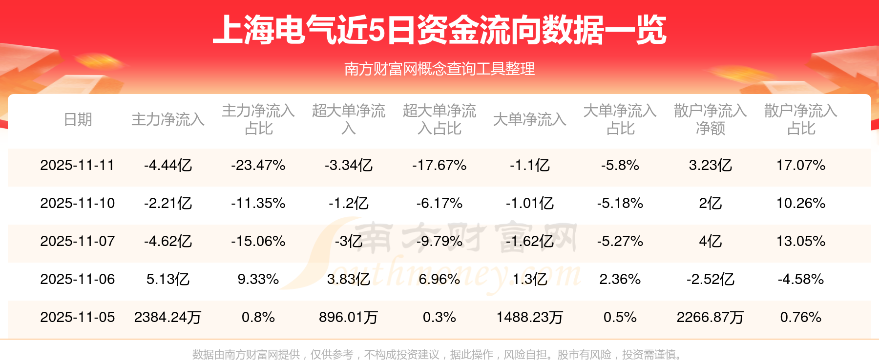 11月11日消息,上海電氣資金凈流出4.44億元,超大單資金凈流出3.34億元,換手率1.28%,成交金額15.07億元。