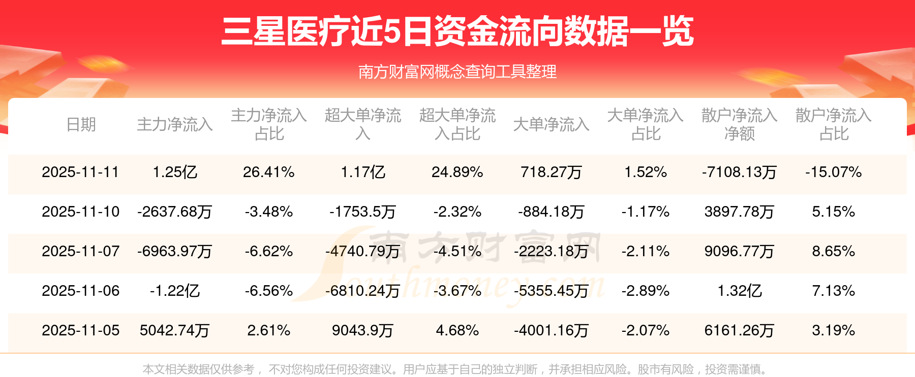 11月11日消息,三星醫(yī)療主力凈流入1.25億元,超大單凈流入1.17億元,散戶凈流出7108.13萬(wàn)元。