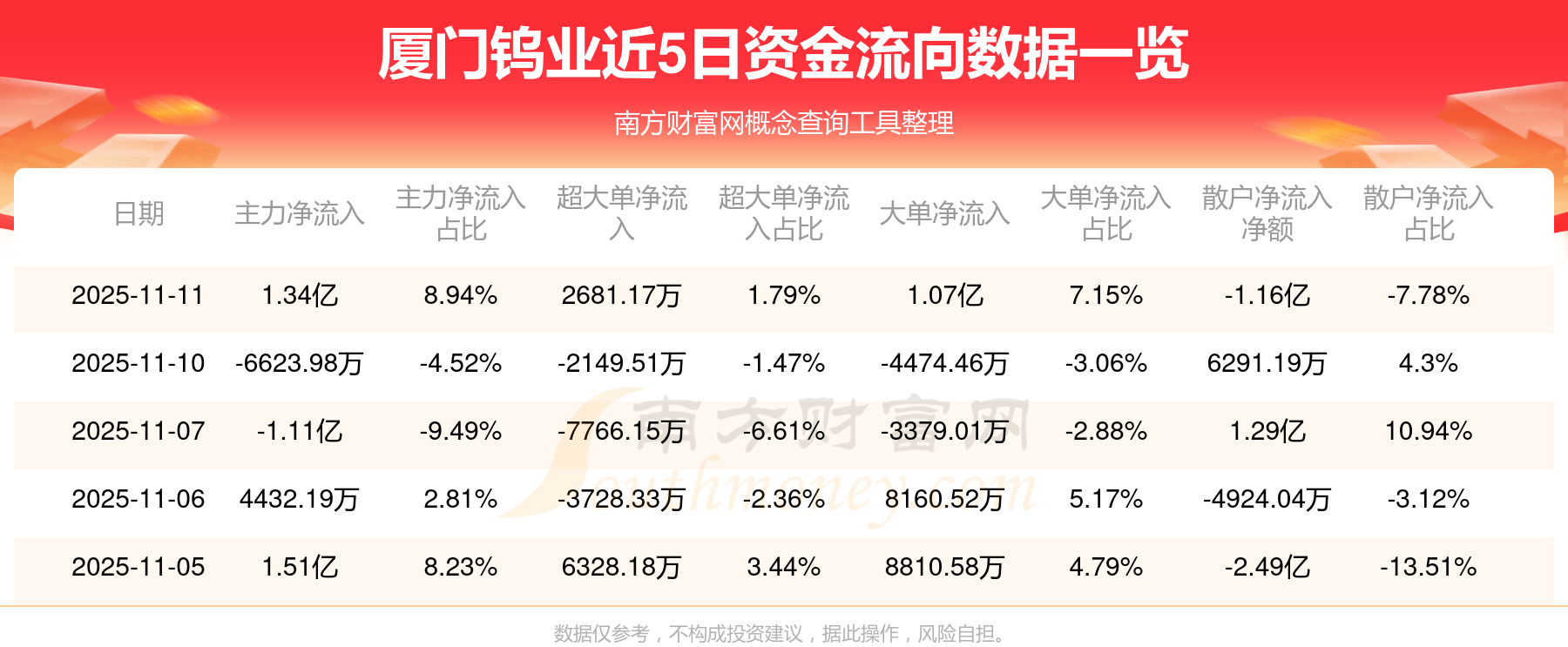 11月11日該股主力凈流入1.34億元,超大單凈流入2681.17萬元,大單凈流入1.07億元,中單凈流出1741.77萬元,散戶凈流出1.16億元。