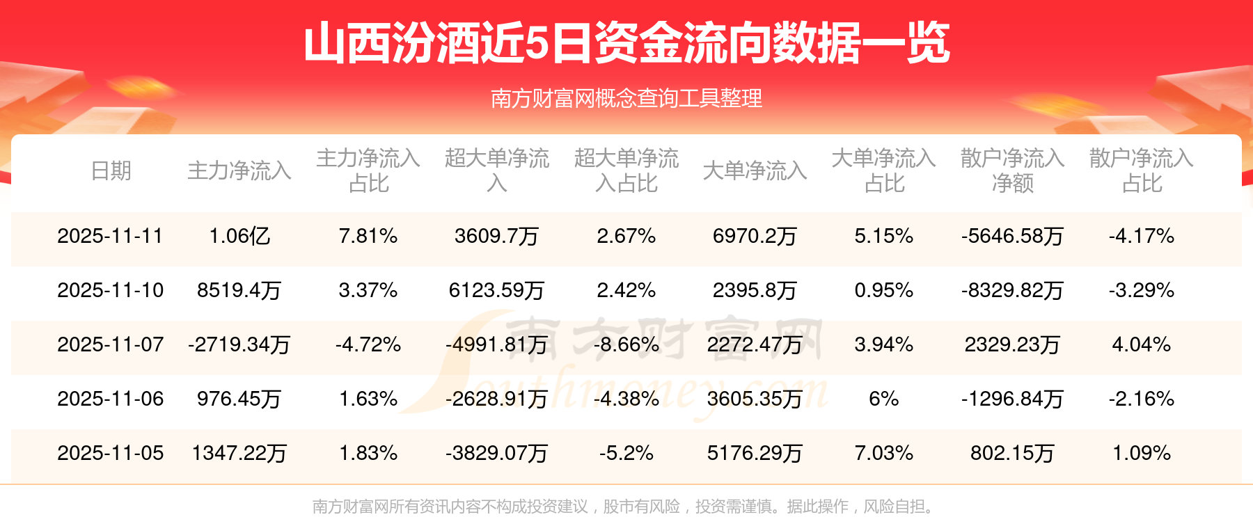 近5日資金流向一覽見下表: