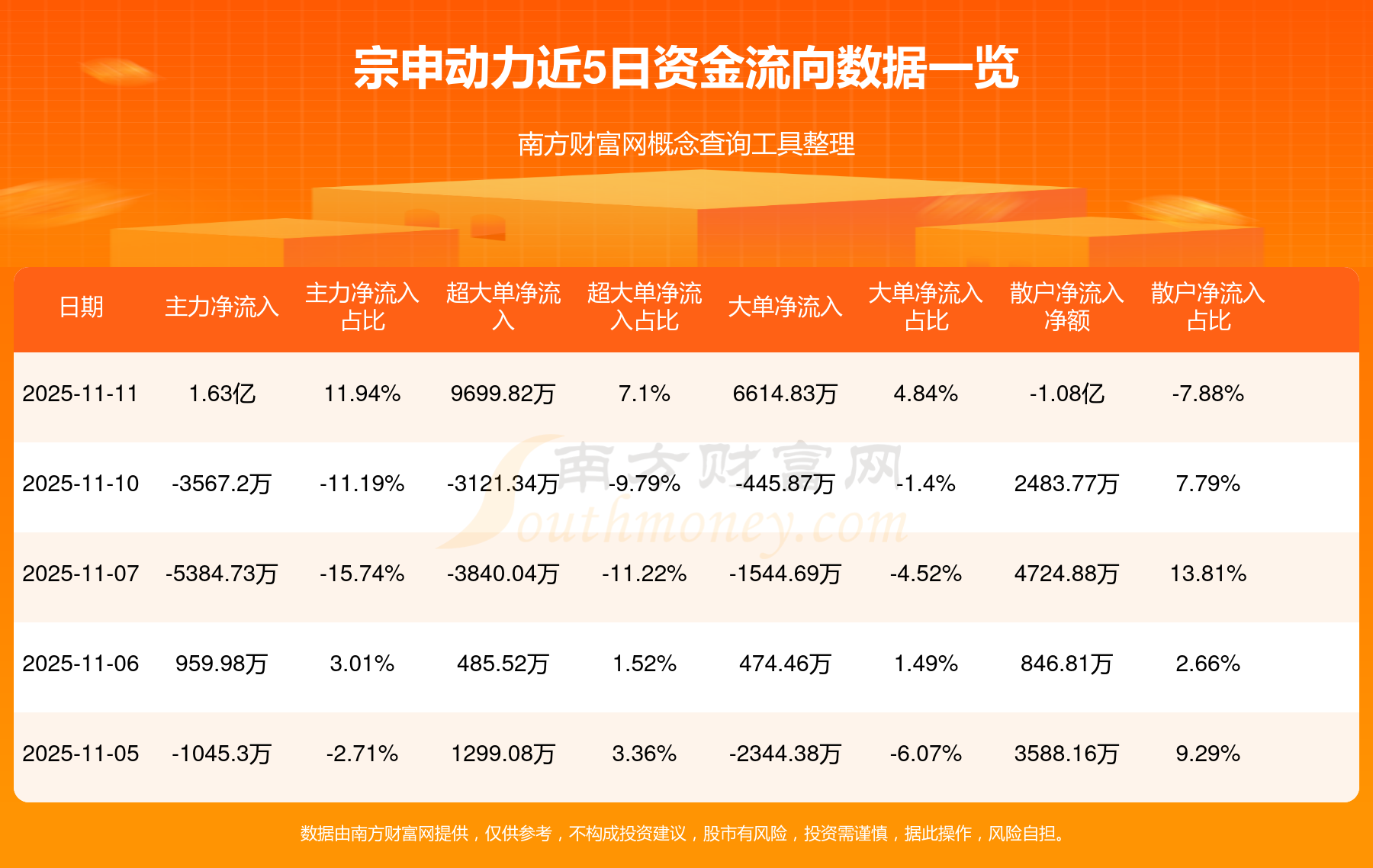 11月11日消息,宗申動力11月11日主力資金凈流入1.63億元,超大單資金凈流入9699.82萬元,大單資金凈流入6614.83萬元,散戶資金凈流出1.08億元。