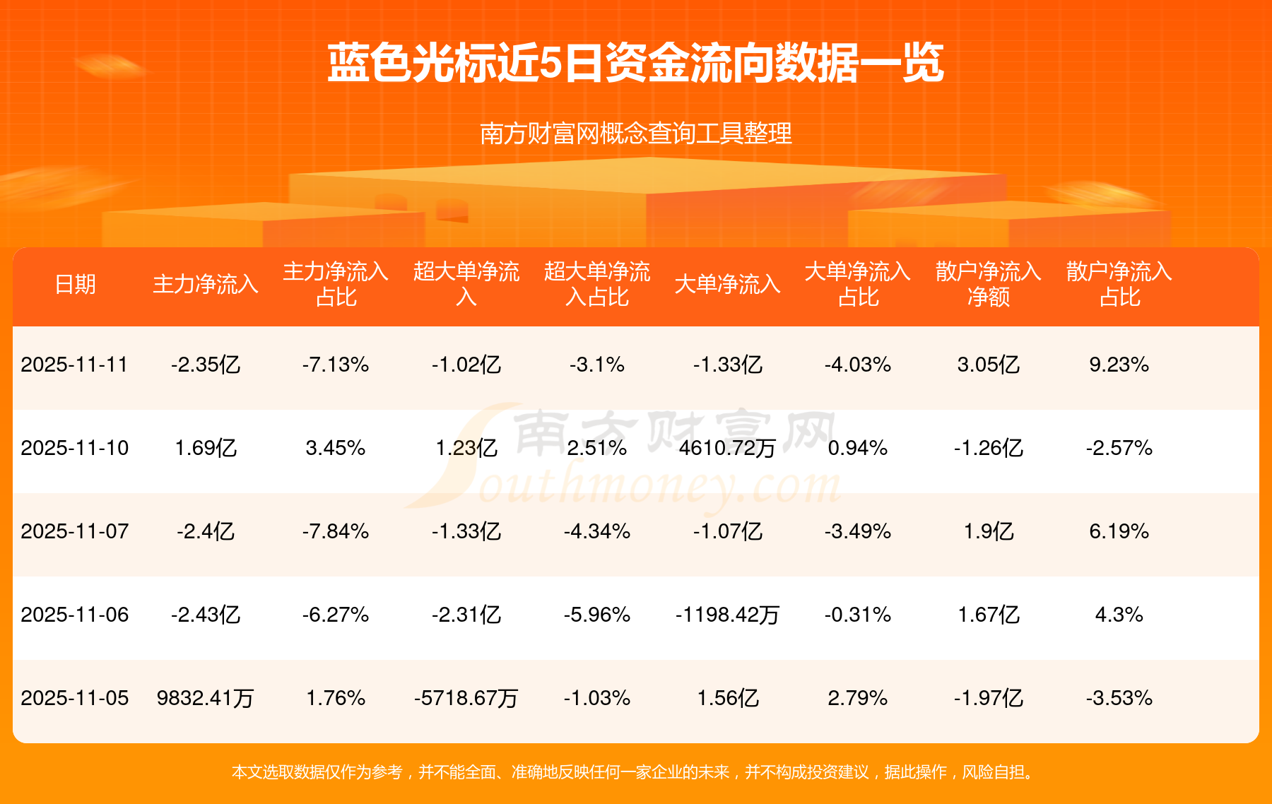 近5日資金流向一覽見下表: