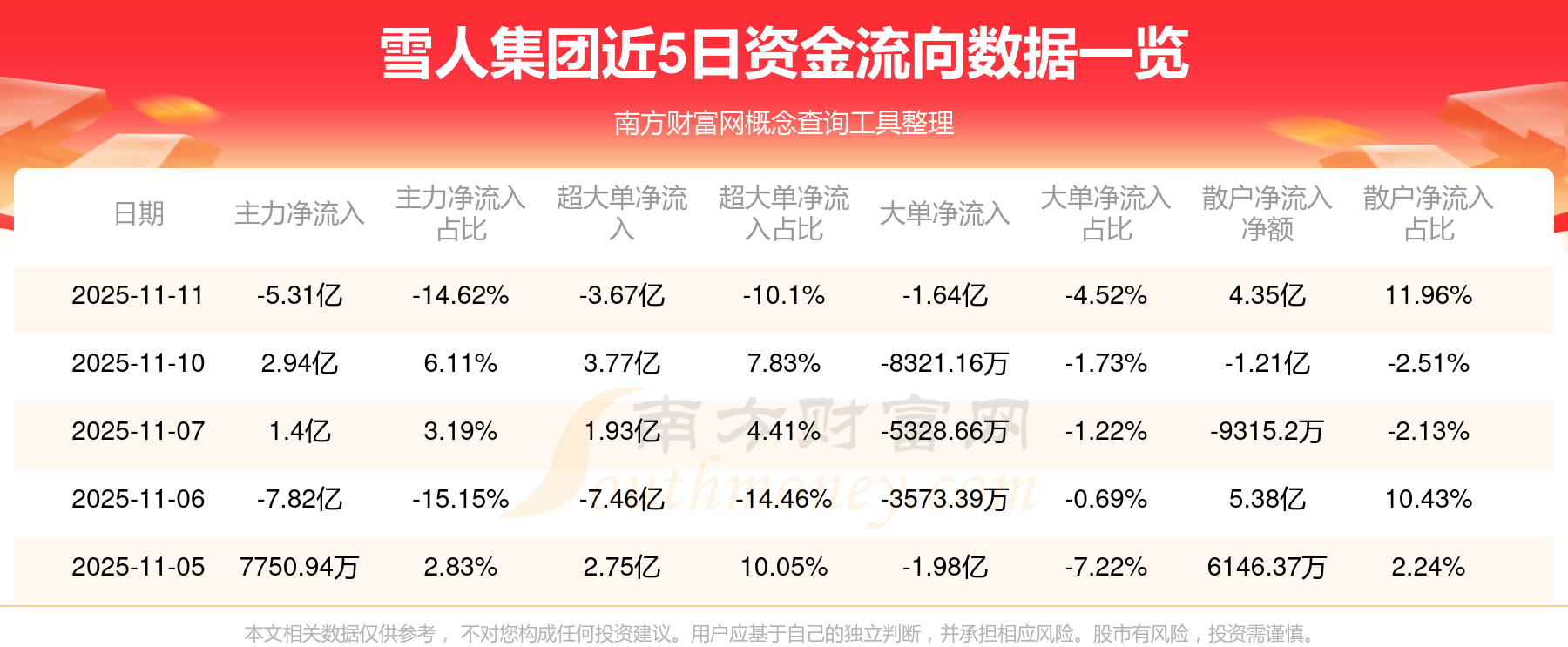 11月11日消息,雪人集團(tuán)11月11日主力資金凈流出5.31億元,超大單資金凈流出3.67億元,大單資金凈流出1.64億元,散戶資金凈流入4.35億元。