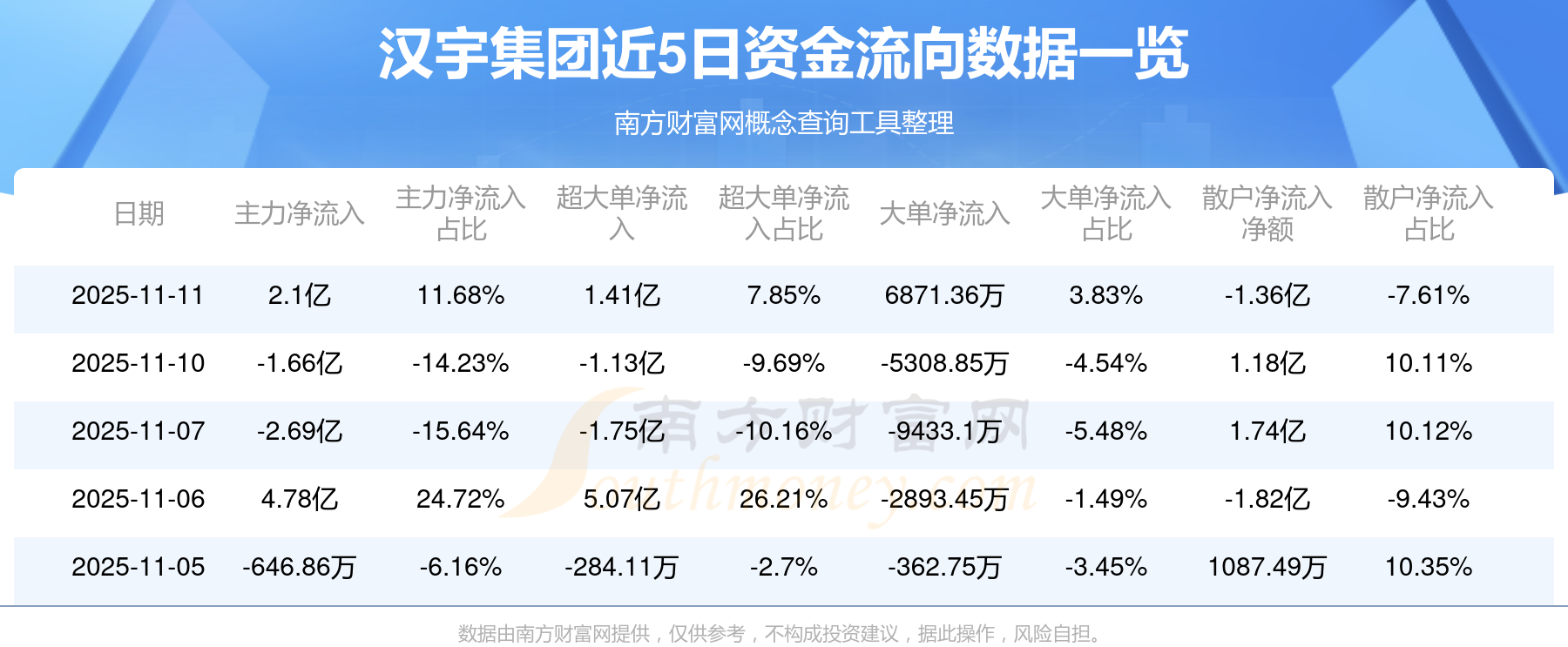 11月11日該股主力資金凈流入2.1億元,超大單資金凈流入1.41億元,大單資金凈流入6871.36萬元,中單資金凈流出7301.96萬元,散戶資金凈流出1.36億元。