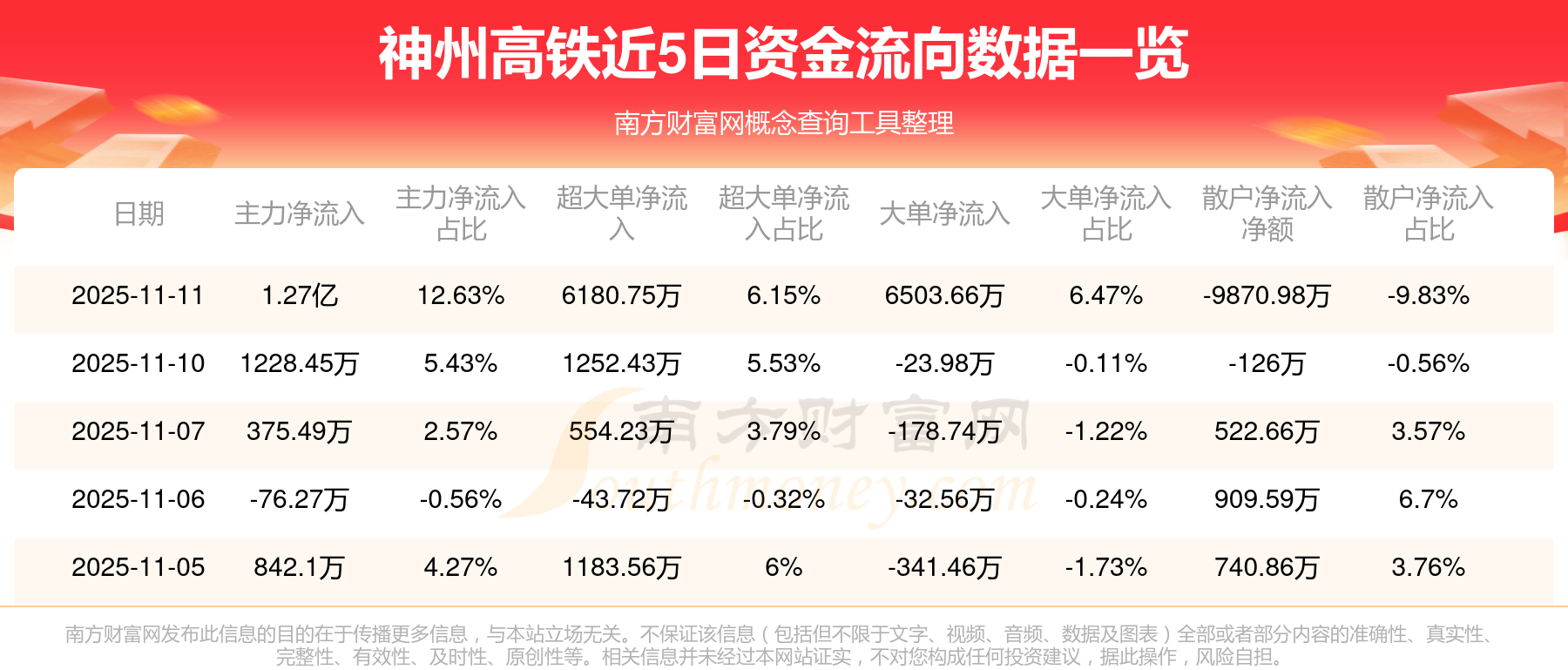 近5日資金流向一覽見下表: