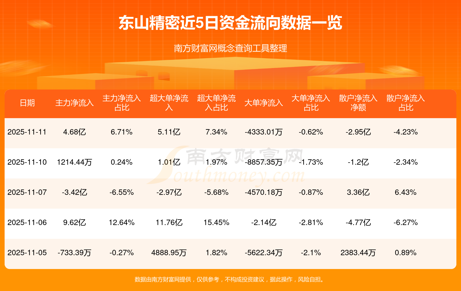 11月11日消息,資金凈流入4.68億元,超大單資金凈流入5.11億元,成交金額38.73億元。