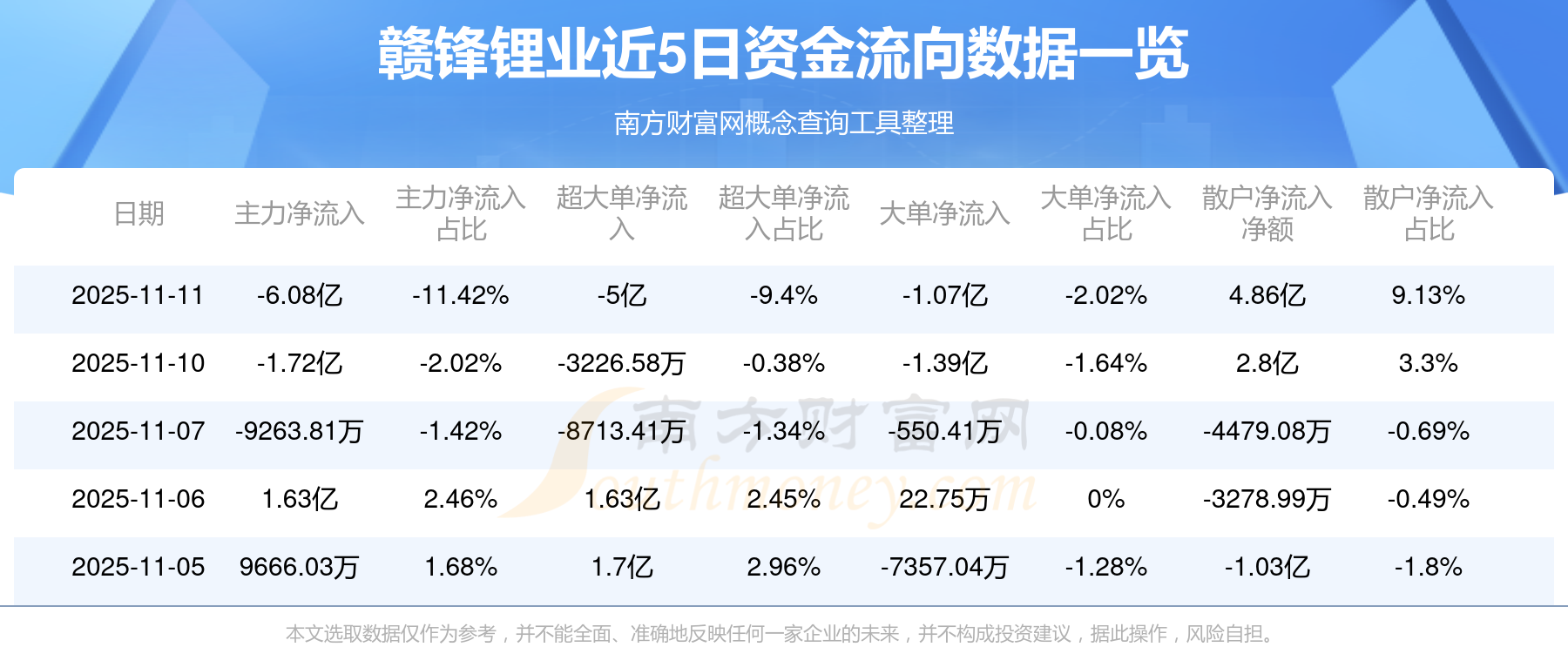 11月11日消息,贛鋒鋰業(yè)資金凈流出6.08億元,超大單凈流出5億元,換手率5.17%,成交金額41.89億元。