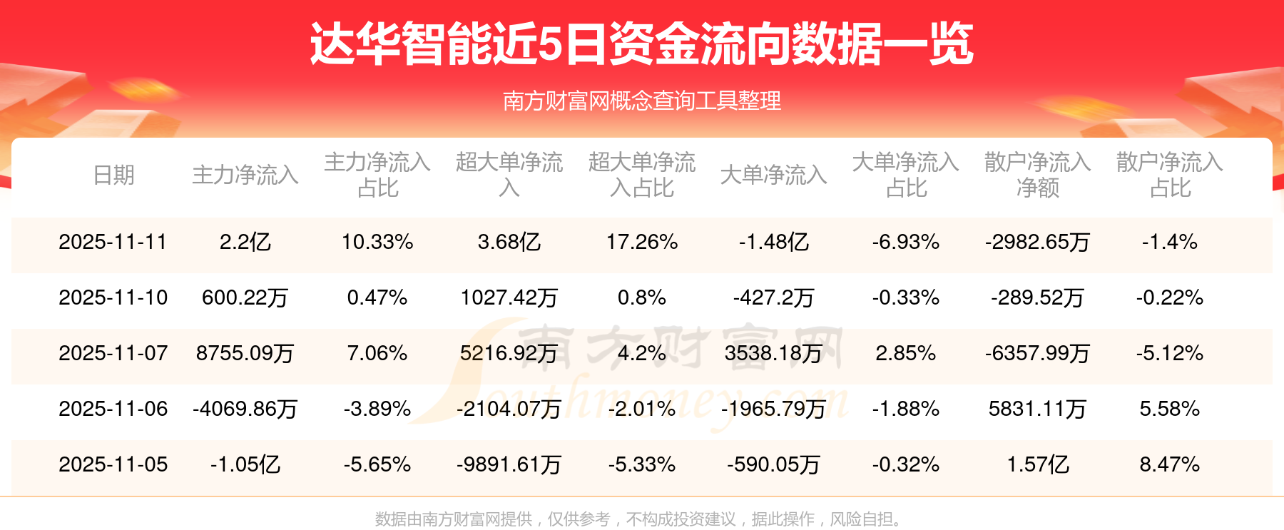 近5日資金流向一覽見下表: