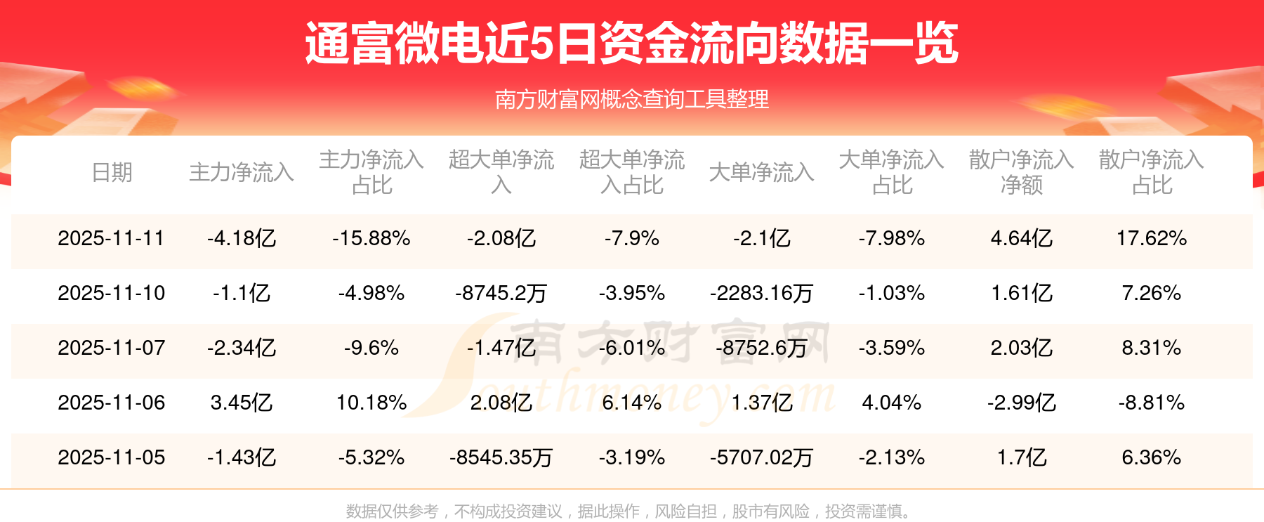 11月11日該股主力資金凈流出4.18億元,超大單資金凈流出2.08億元,大單資金凈流出2.1億元,中單資金凈流出4576.92萬元,散戶資金凈流入4.64億元。